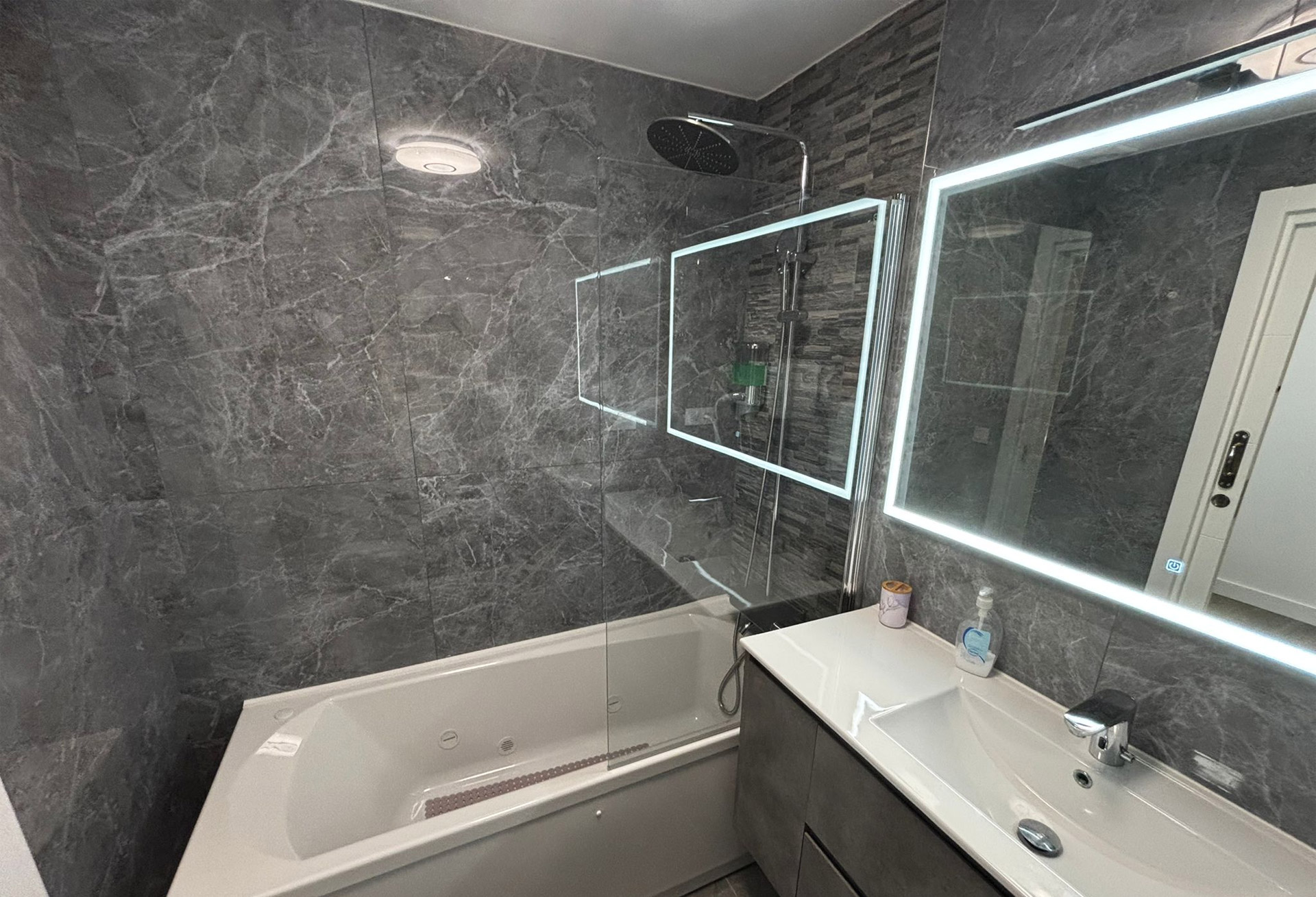 El apartamento cuenta con dos amplias habitaciones dobles, cada una equipada con aire acondicionado para asegurar un descanso fresco y placentero durante todo el año. Además, dispone de dos baños completos, lo que brinda máxima comodidad y privacidad, especialmente en estancias con varios huéspedes.